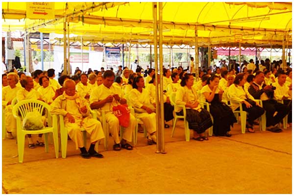 (บน) อุบาสกอุบาสิกาในอำเภอนาคู เขาวง และห้วยผึ้ง เข้าร่วมปฏิบัติธรรม ประมาณ ๒๐๐ คน