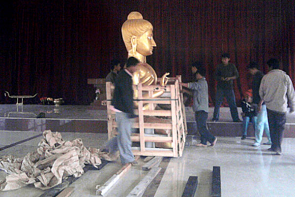 The casting Ceremony of a big Buddha statue at a casting factory in Nakon Pathom province and donated five Buddha statues including the big one to Buddhist temples in Arunachal Pradesh , India.